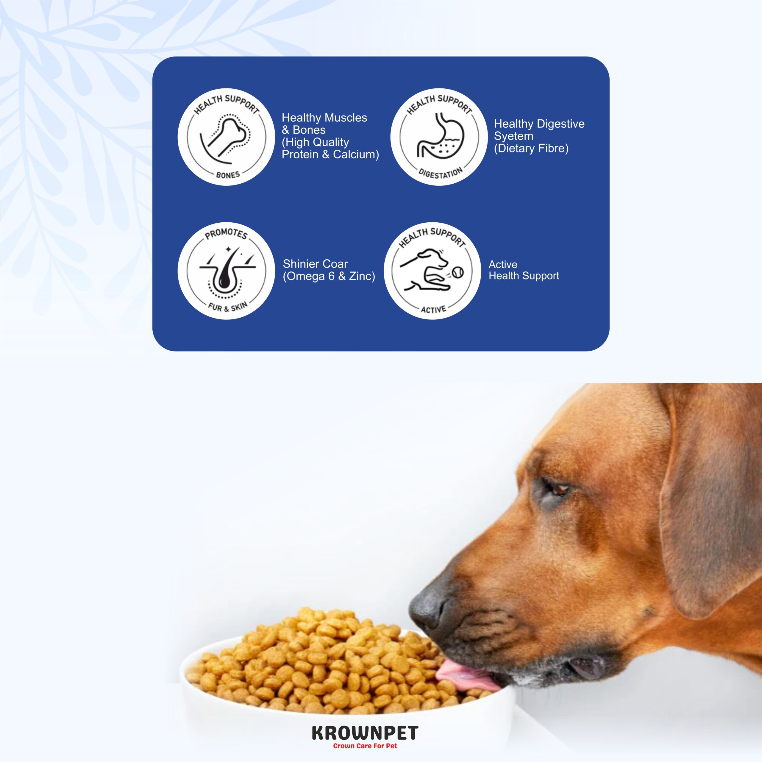 Give your dog complete and balanced daily nutrition with KROWN PET™ Adult Premium Dog Food. Specially formulated to support adult dogs, this nutritious meal promotes strong muscles, shiny coat, healthy digestion, and sustained energy. Made with carefully selected high-quality ingredients, it ensures your pet stays active, healthy, and happy every day.